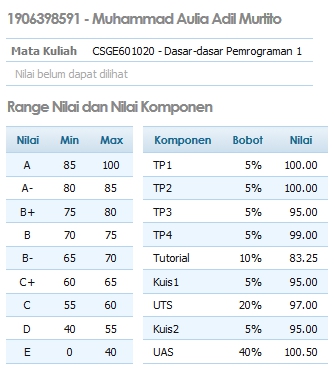 In the class, the lecturer taught us the basics and in the lab (for tutorial), we have to implement those basics to solve programming problems. If we stuck at the problem, the laboratory assistant (labsis) will give us a hint, so don’t be afraid to ask them. Now, the funny thing in the lab is that you can be a hero here. Sometimes, the problems are too hard and most of the students have no idea how to deal with it. This is your chance to flirt help others and if you can consistently do that, you will get the title “TOKILLER” which means your skill is like one of those Informatics Olympiad Medalists (unless you are an Informatics Olympiad Medalist itself of course). But if the problems were too hard to be solved in 100 minutes, the labsis would extend the lab duration or increase the score of the easier problem.